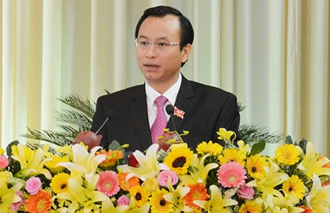 Ông Nguyễn Xuân Anh phát biểu nhậm chức bí thư Thành ủy Đà Nẵng nhiệm kỳ 2015-2020. Ảnh: CÔNG KHANH