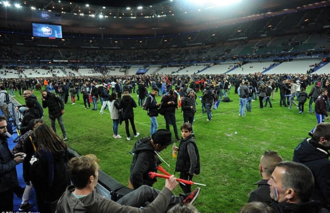 Kể lại giây phút hãi hùng trong trận Pháp - Đức vào tối 13-11, một nhà báo Đức thuật lại: “Phút thứ 17 trận giao hữu Pháp - Đức, một tiếng nổ vang lên làm rung chuyển cả sân Stade de France. Vào lúc đó, một vài cổ động viên reo vang “Ole!” đầy phấn khởi. Hình như họ nghĩ đó chỉ là một quả pháo sáng như vẫn xảy ra ở giải Ligue 1. Hai phút sau thì tiếng nổ thứ hai vang lên nhưng bóng vẫn lăn. Trên sân, 22 cầu thủ vẫn thi đấu, hình như họ không biết đến thảm kịch xảy ra cách đó chỉ hơn 100 m. Không một thông báo và các cổ động viên vẫn hò reo sau mỗi bàn thắng của tuyển Pháp trước nhà vô địch thế giới… Trong giờ nghỉ giữa hai hiệp, một chiếc trực thăng đã xuất hiện trên bầu trời Stade de France. Cho đến khi trọng tài nổi còi kết thúc trận đấu, ban tổ chức sân thông báo đã có sự cố bên ngoài sân và đề nghị mọi người về theo cửa được hướng dẫn ở phía tây… Sau đó thì cảnh nhốn nháo và sân bóng ngập trong biển người…”.