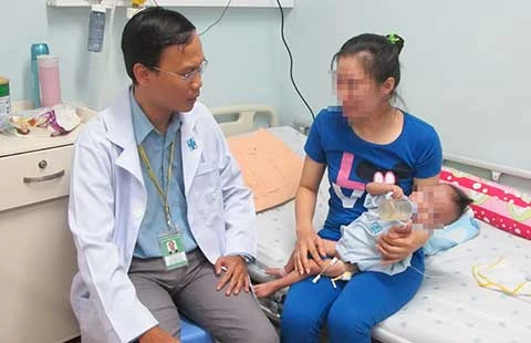 Chị NTTX (Khánh Hòa) hạnh phúc khi con mình được BV ĐH Y Dược hỗ trợ mổ tim miễn phí. Ảnh: HÀ PHƯỢNG