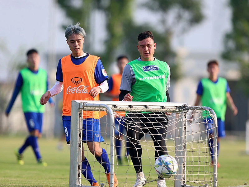Các cầu thủ có sự cạnh tranh lành mạnh để trụ lại đội tuyển chơi Asiad 18. Ảnh: QUANG THẮNG