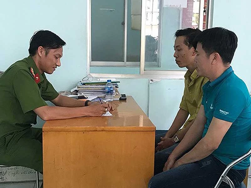 Công an phường làm việc với hai bảo vệ đánh ông Patrick Mullen, du khách Ireland. (Ảnh do công an cung cấp)