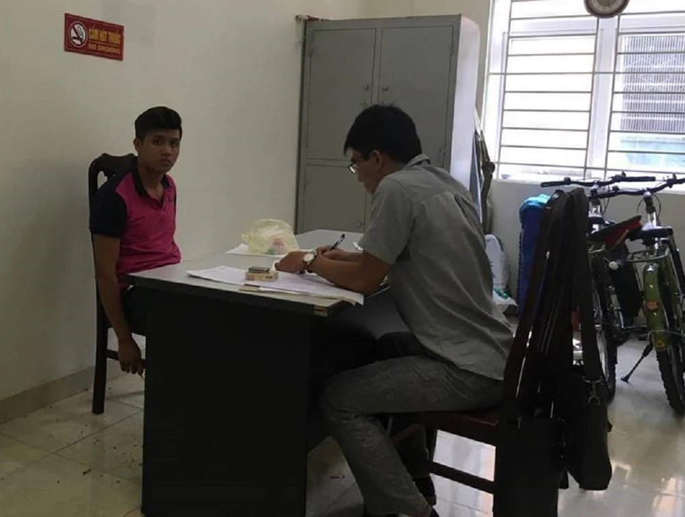 Nguyễn Thanh Tùng tại cơ quan công an.