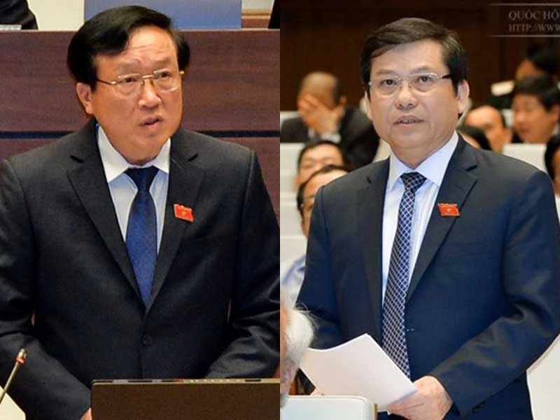 Ông Nguyễn Hòa Bình và ông Lê Minh Trí đang trả lời trước Quốc hội. Ảnh: ĐM