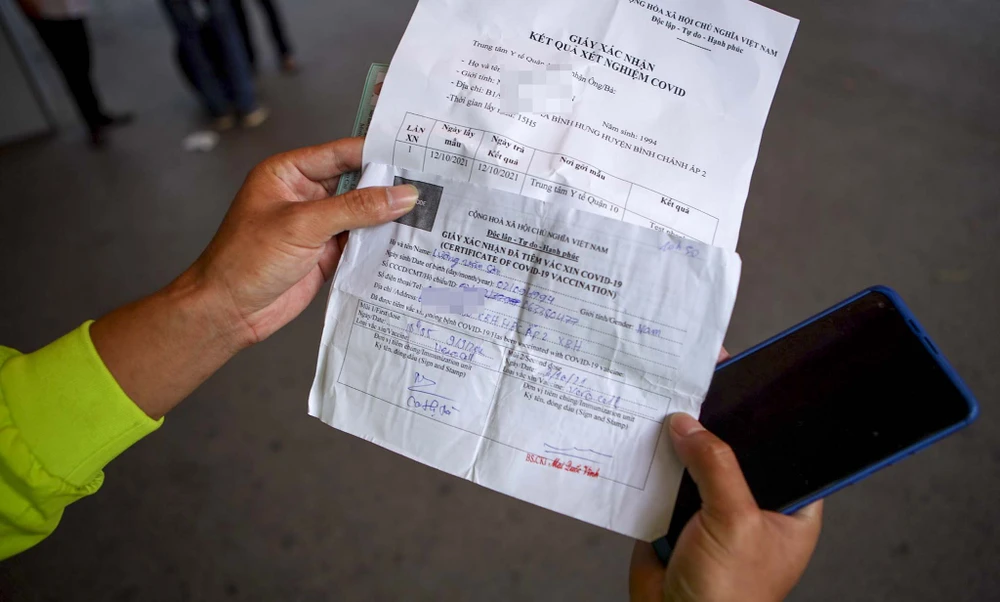 Người dân trình giấy tiêm đủ hai mũi vaccine nhưng chưa đủ 14 ngày sau khi tiêm mũi 2, cũng không được phép lên tàu.