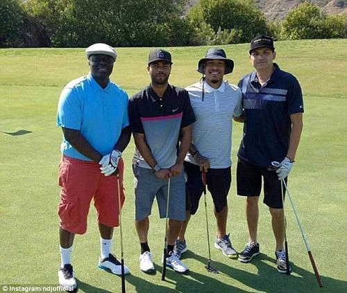 Sao LA Galaxy, Nigel de Jong (thứ hai bên phải) và Ashley Cole (thứ hai bên trái) dành thời gian để chơi gôn.