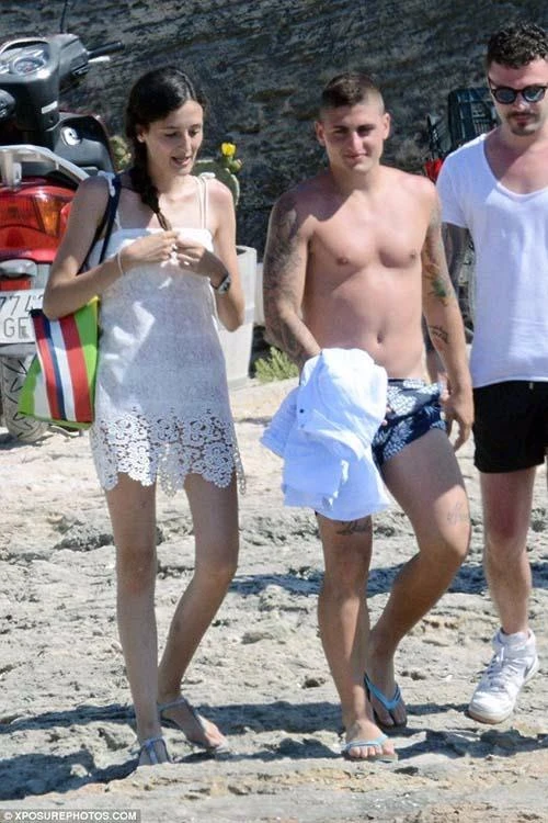 Sao Ý Marco Verratti bỏ lỡ Euro 2016 vì chấn thương và đã dành thời gian của mình trên bãi biển với bạn gái Laura Zazzara