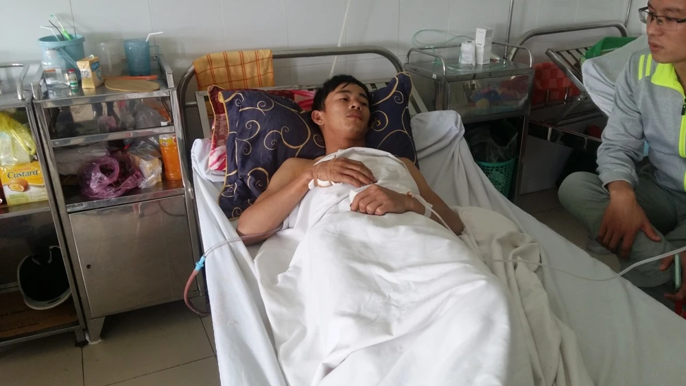 Anh Hiệp bị thương nặng, gục xuống, được mọi người đưa đi cấp cứu tại BV Hữu nghị Đa khoa tỉnh Nghệ An.