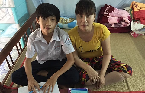 Theo ghi nhận của PV, hiện bà Đào đang ở nhờ căn nhà chưa đầy 40 m2 cùng gia đình người em trai (tổng cộng tám người trong nhà). Ba mẹ con bà trú ngụ trong căn phòng chưa đầy 10 m2, chỉ đủ kê một chiếc giường và cái tủ quần áo. Bàn học của con trai nhỏ (sinh năm 2003, lớp 7) được kê trên ngay lối đi, chỗ trống duy nhất trong căn phòng cũng là chỗ nằm của đứa con trai lớn (sinh năm 1998). Con trai lớn thì đã nghỉ học khi đang giữa học kỳ II lớp 11, hằng ngày cậu trông xe thuê cho quán cơm được 1,4 triệu đồng/tháng. Hôm qua là ngày đầu tiên cậu đi làm vì vừa đủ 18 tuổi…