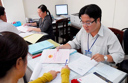 Xây dựng một nền hành chính phục vụ nhân dân là một trong sáu chương trình đột phá của TP. Trong ảnh: Làm thủ tục hành chính tại UBND quận 10. Ảnh: HTD