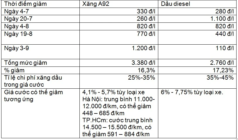 Ông Nguyễn Mạnh Hùng, Phó chủ tịch Vinastas cho biết từ tháng 7 đến nay, sau 5 lần giá xăng dầu giảm liên tục thì đến nay giá cước vận tải hầu như không nhúc nhích, nhiều hãng taxi giữ nguyên giá cước. Tác hại càng nhân lên khi các doanh nghiệp, các mặt hàng khác cũng “neo” giá theo giá vận tải.