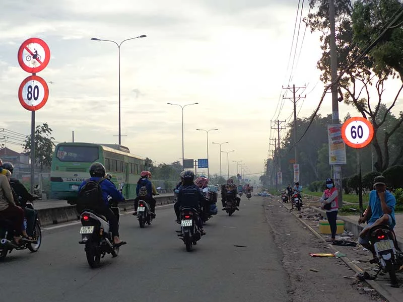 Phần đường hỗn hợp của quốc lộ 1 đoạn từ Khu chế xuất Linh Trung đến cầu vượt Trạm 2 quá xấu, mặt đường dành cho lưu thông bị bó hẹp nên được đề xuất giảm tốc độ tối đa xuống 50 km/giờ. Ảnh: LĐ