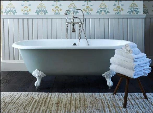 Phòng tắm được công nương Meghan chọn lựa gam màu trắng xanh nhẹ nhàng, dịu mắt phù hợp cho vợ chồng trẻ. Đây là không gian yêu thích của cô vì được tận hưởng những phút giây thư giãn hoàn toàn.