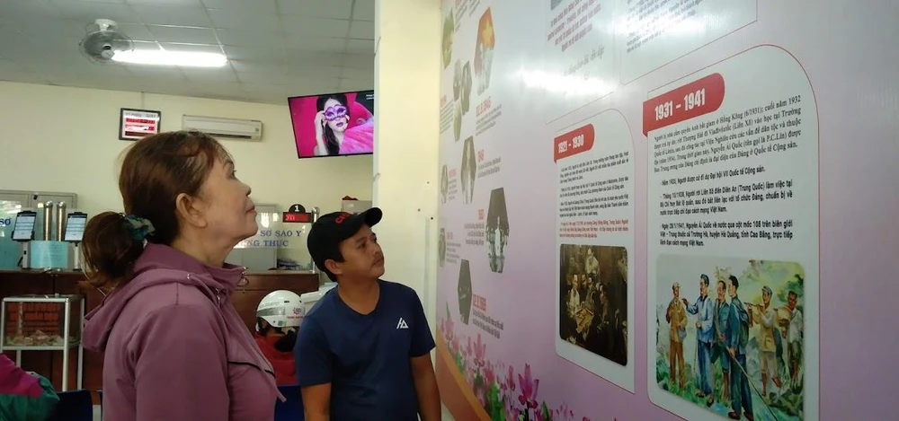 Người dân đến trụ sở UBND xã Vĩnh Lộc B làm hồ sơ đã tranh thủ xem, đọc các tài liệu về Bác. Ảnh: NGUYỄN TÝ |