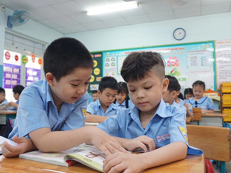 Học sinh lớp 1 Trường Tiểu học Triệu Thị Trinh, quận 10, TP.HCM trong một tiết học. Ảnh: NGUYỄN QUYÊN