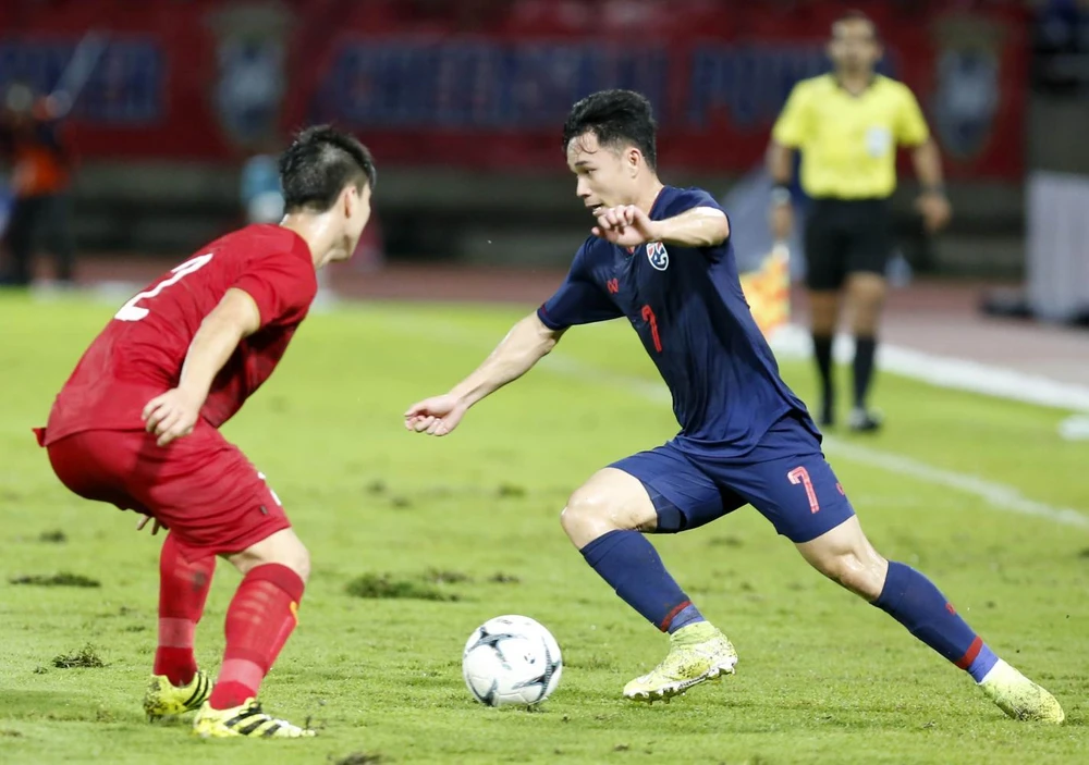 Supachok (7) cầu thủ hay nhất của Thái Lan với nhiều pha đi bóng dũng mãnh và khó chịu.