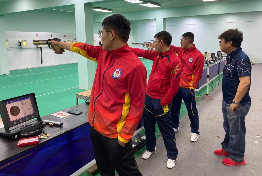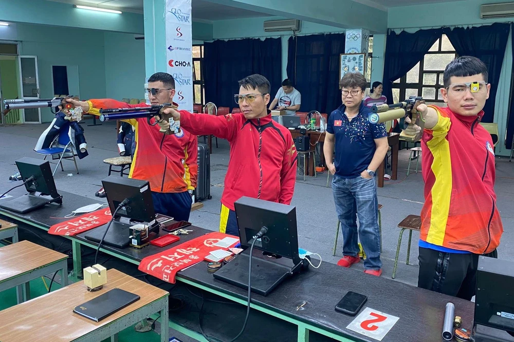 Xạ thủ Trần Quốc Cường (thứ hai từ trái) được kỳ vọng sẽ giành vé tham dự Olympic Tokyo.