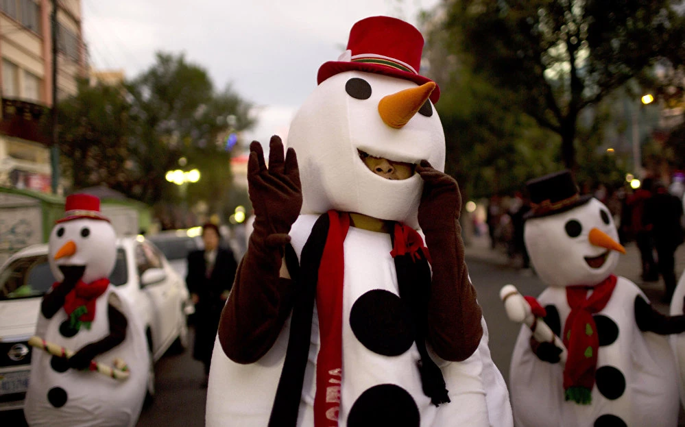 Người tuyết diễu phố trong cuộc tuần hành Giáng sinh ở La Paz, Bolivia.