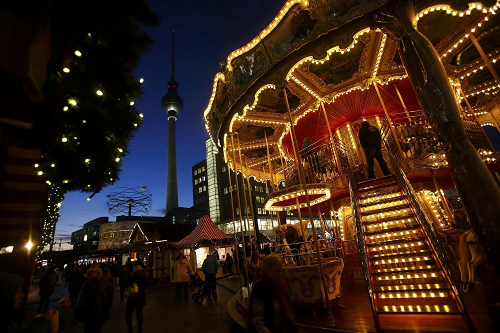 Mọi người nô nức tới một khu chợ bán đồ Giáng sinh ở Alexanderplatz (Berlin)