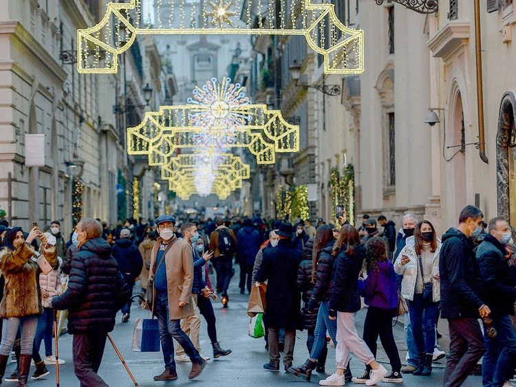 Người dân Ý đi mua hàng trên đường phố vào ngày 23-12-2021. Ảnh: AFP