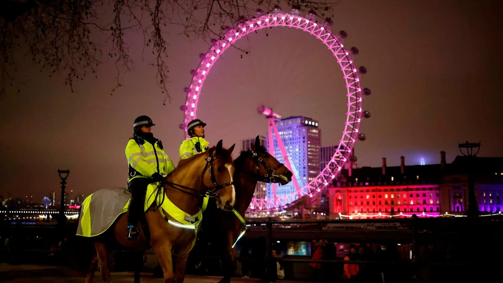 Cảnh sát Anh đi tuần trên thành phố nhằm chống tụ tập đông người đón năm mới 2021. Ảnh: AFP