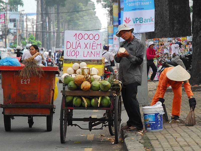 Người xả, người hốt. Chuyện thường ngày dễ nhìn thấy tại TP.HCM. Ảnh: HTD