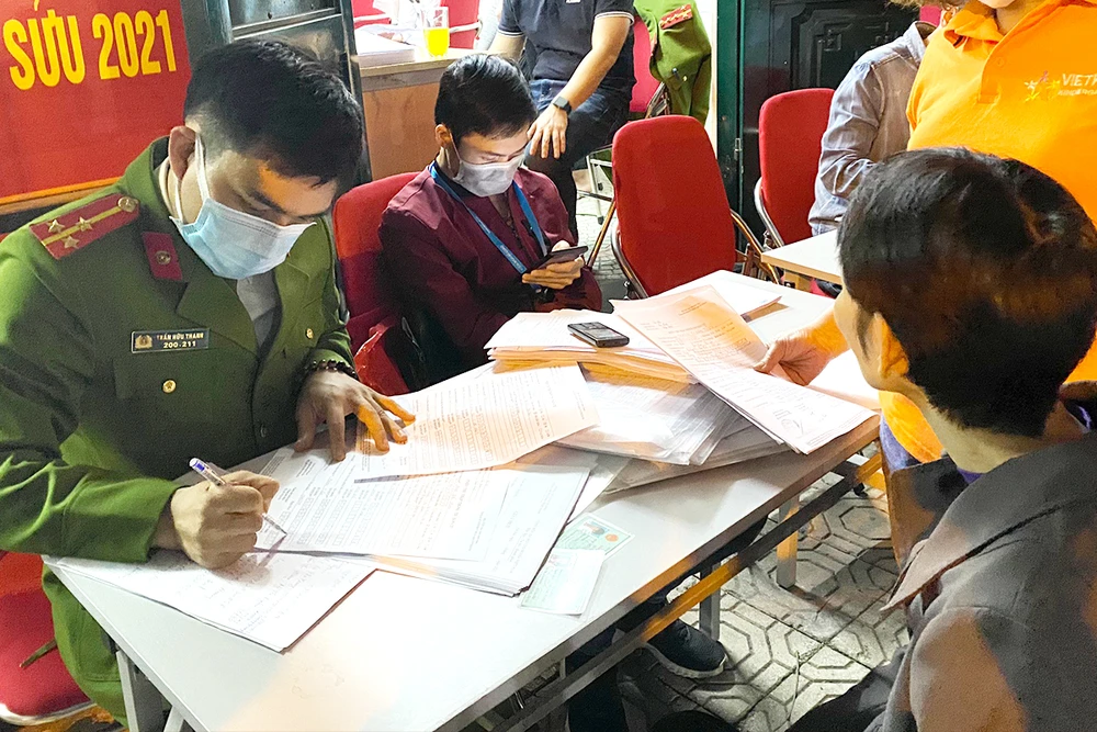 Lực lượng Công an TP Hà Nội làm thủ tục cấp CCCD gắn chip cho người dân.