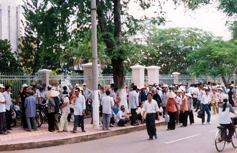 Tháng 6-2000, hay tin bà Nguyễn Thị Hoài Thu về đối thoại với người dân khiếu kiện, hàng trăm người dân thị xã Tân An (Long An) đã tụ tập từ sáng sớm trước hội trường UBND tỉnh để xin gặp bà. Ảnh: ĐỨC HIỂN