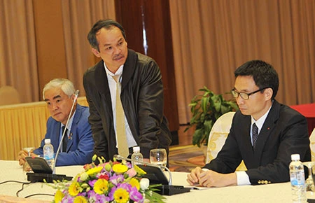 Bầu Đức báo cáo với Phó Thủ tướng Vũ Đức Đam (bìa phải). Ảnh: QUANG THẮNG