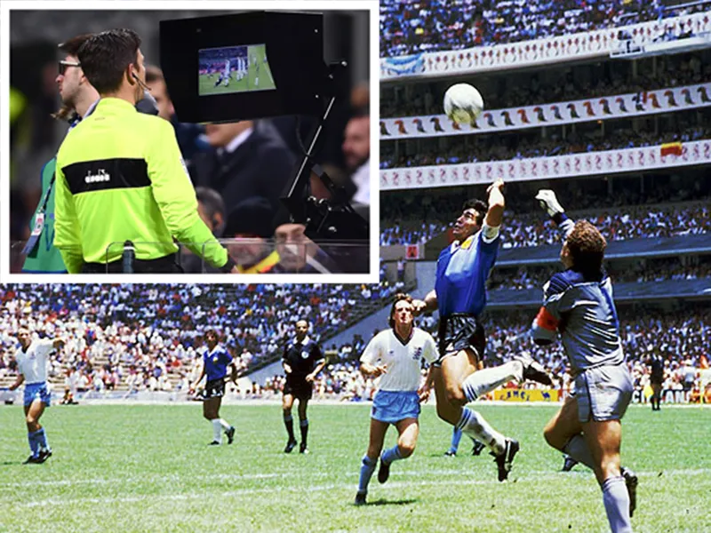 Với “bàn tay Chúa” khiến đội Anh chết oan ở tứ kết. Ảnh: GETTY IMAGES. Công nghệ VAR đưa vào World Cup (ảnh nhỏ) không phải được tất cả đều ủng hộ. Ảnh: GETTY IMAGES