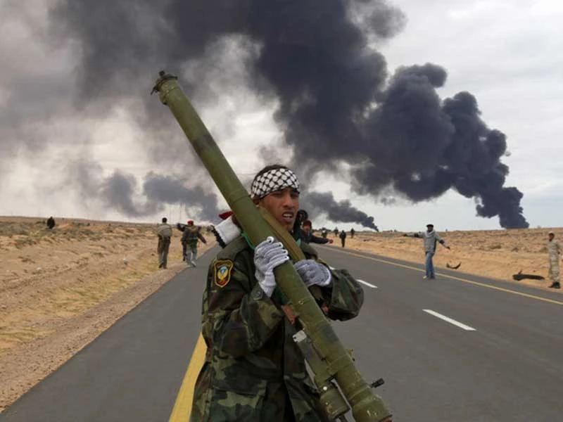 Ảnh chụp năm 2011 cho thấy một phần tử thuộc lực lượng phiến quân đang mang theo súng phòng không nghi được cung cấp từ các đối tác phương Tây. Ảnh: REUTERS