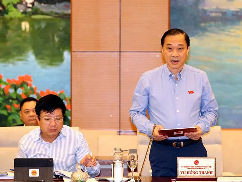 Chủ nhiệm Ủy ban Kinh tế của Quốc hội Vũ Hồng Thanh trình bày báo cáo thẩm tra. Ảnh: TTXVN