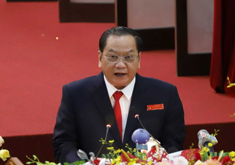 Ông Phạm Văn Hiểu trình bày dự thảo báo cáo chính trị tại Đại hội. Ảnh: CQ