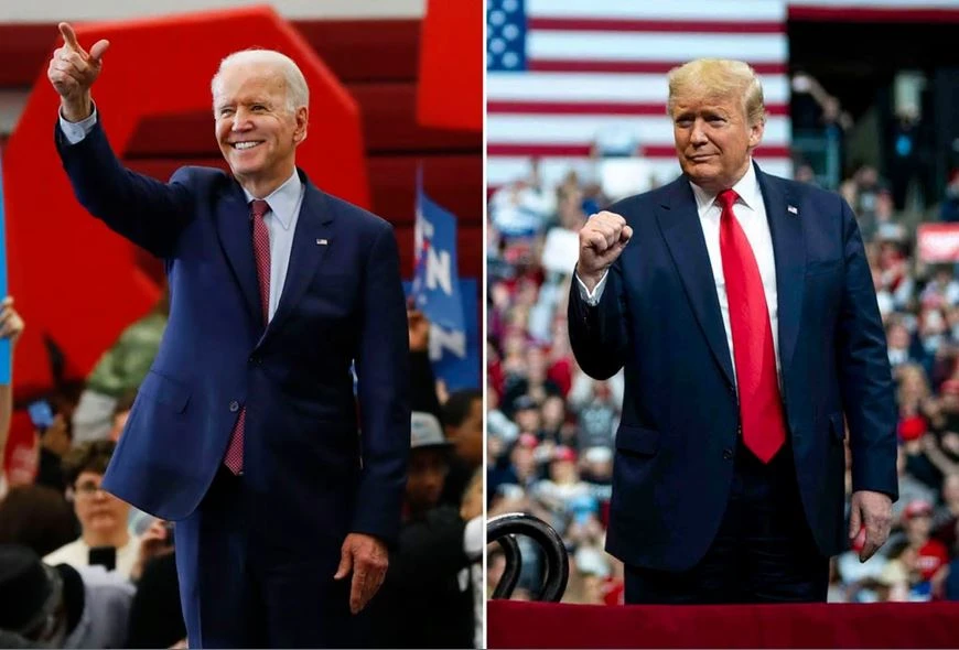 Phó Tổng thống Joe Biden - ứng viên hàng đầu bên đảng Dân chủ (trái) đang lo đương kim Tổng thống Cộng hòa Donald Trump (phải) sẽ tìm cách trì hoãn cuộc bầu cử vì sợ dịch COVID-19 ảnh hưởng đến sự ủng hộ với mình. Ảnh: BOSTON GLOBE