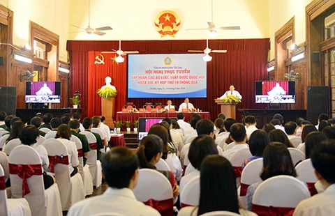 Hội nghị tập huấn trực tuyến về năm bộ luật, luật mới của TAND Tối cao. Ảnh: Đ.MINH