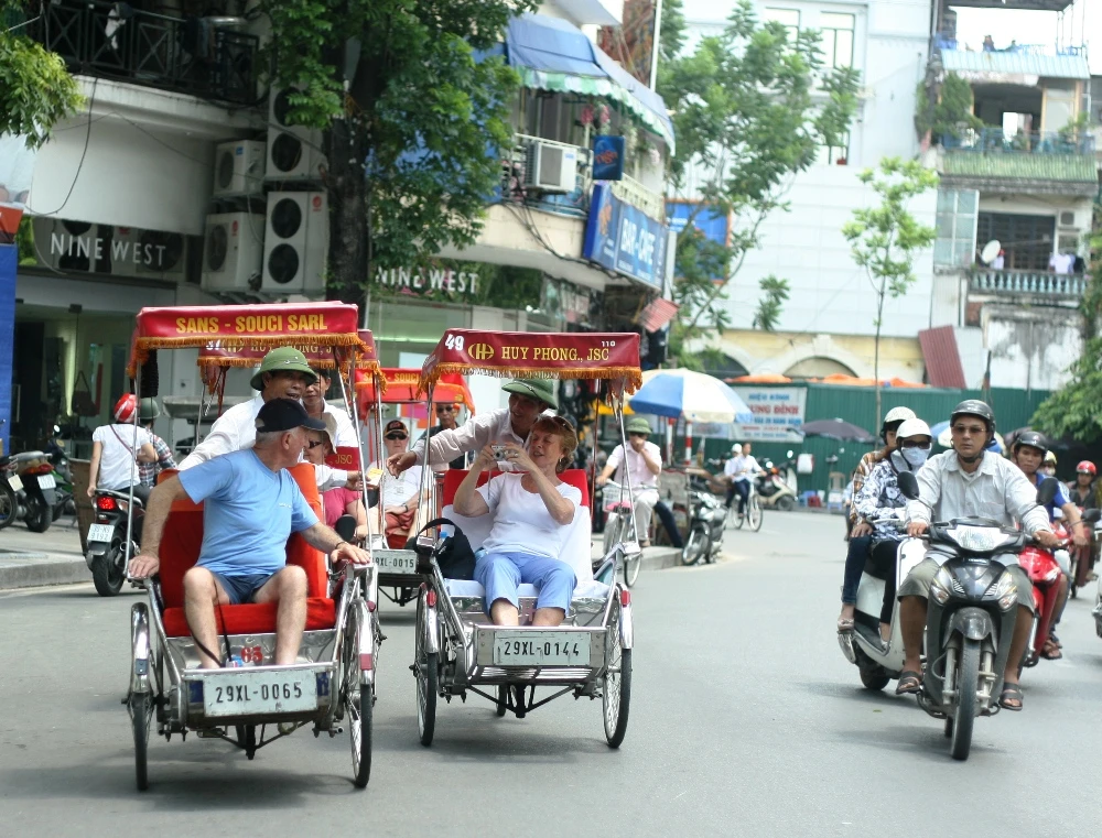 Khách nước ngoài du lịch tại Hà Nội. Ảnh V.THỊNH