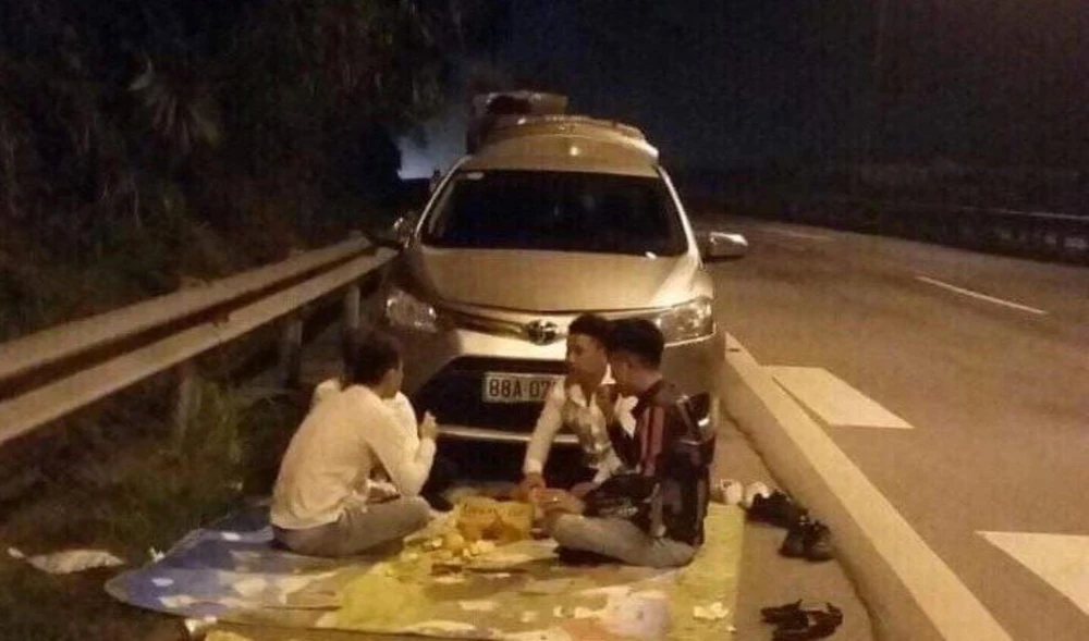 Hành vi ăn nhậu trên cao tốc vừa phản cảm, nguy hiểm nhưng hiện chưa có quy định xử phạt. Ảnh: Internet