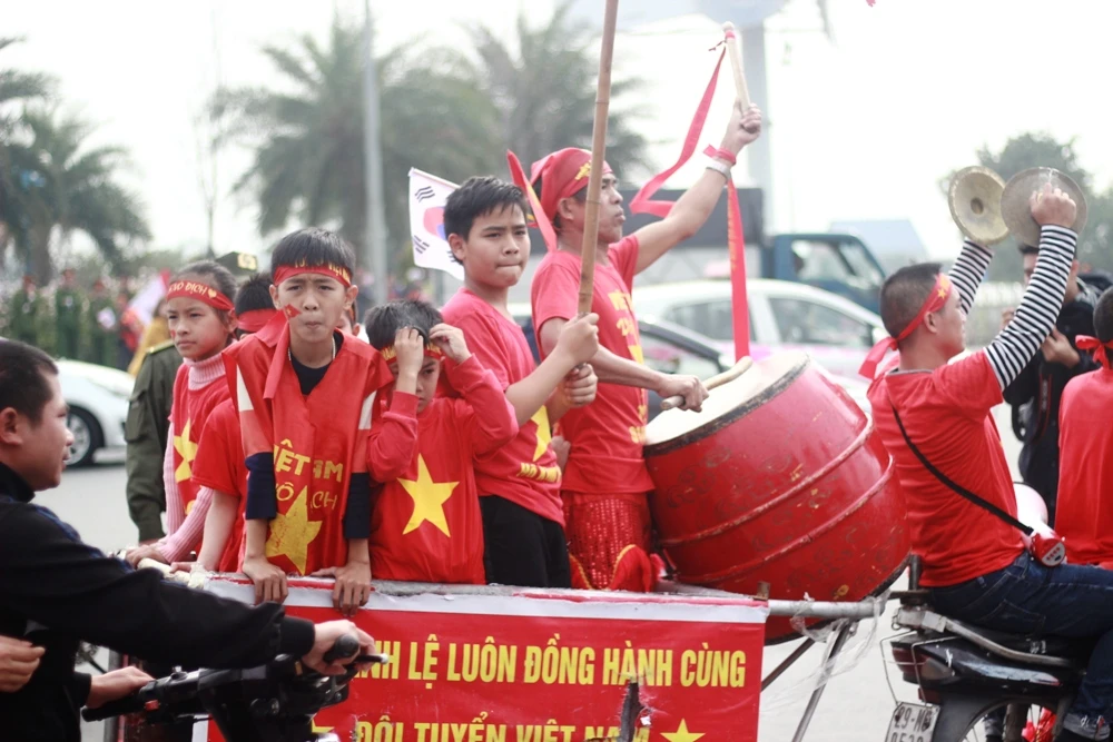 Người hâm mộ hào hứng chờ đón đội tuyển.