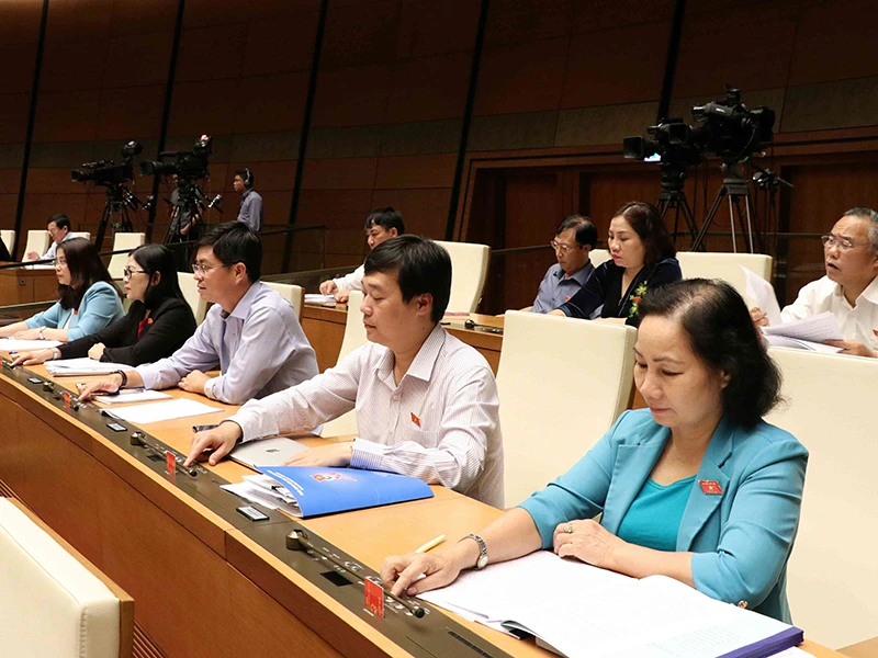 Các đại biểu biểu quyết thông qua Luật Bảo vệ bí mật nhà nước. Ảnh: TTXVN