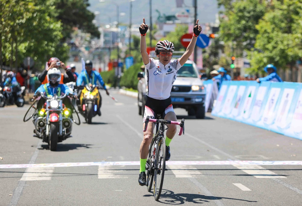 Tạo được khoảng cách hơn 3 phút so với các tay đua nhóm 2, Karami Miyoko xuất sắc giành chiến thắng chặng 2 Định Quán - Bảo Lộc. Thành tích giúp tuyển thủ Nhật Bản vươn lên dẫn đầu giải áo vàng, độc chiếm giải thưởng áo đỏ "nữ hoàng leo núi". Với thành tích này, tuyển Nhật Bản cũng đã bỏ xa các đối thủ Thái Lan, tuyển Philippines trên bảng tổng sắp đồng đội. ẢNH: PHẠM HUY