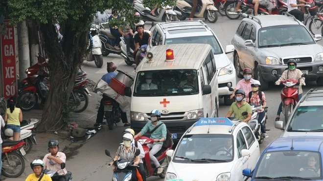 Xe cấp cứu thuộc nhóm ưu tiên nhưng thường bị "vây" bởi nhiều phương tiện khác.