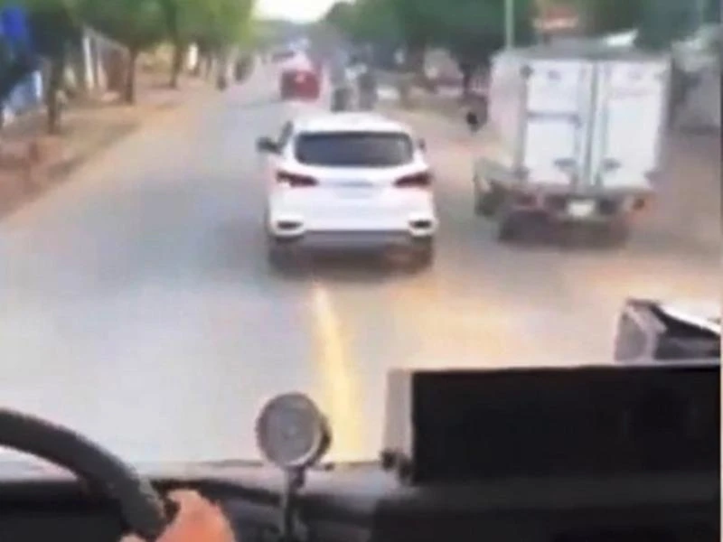 Chiếc xe ung dung chạy trước mũi xe cứu hỏa suốt 4 km.