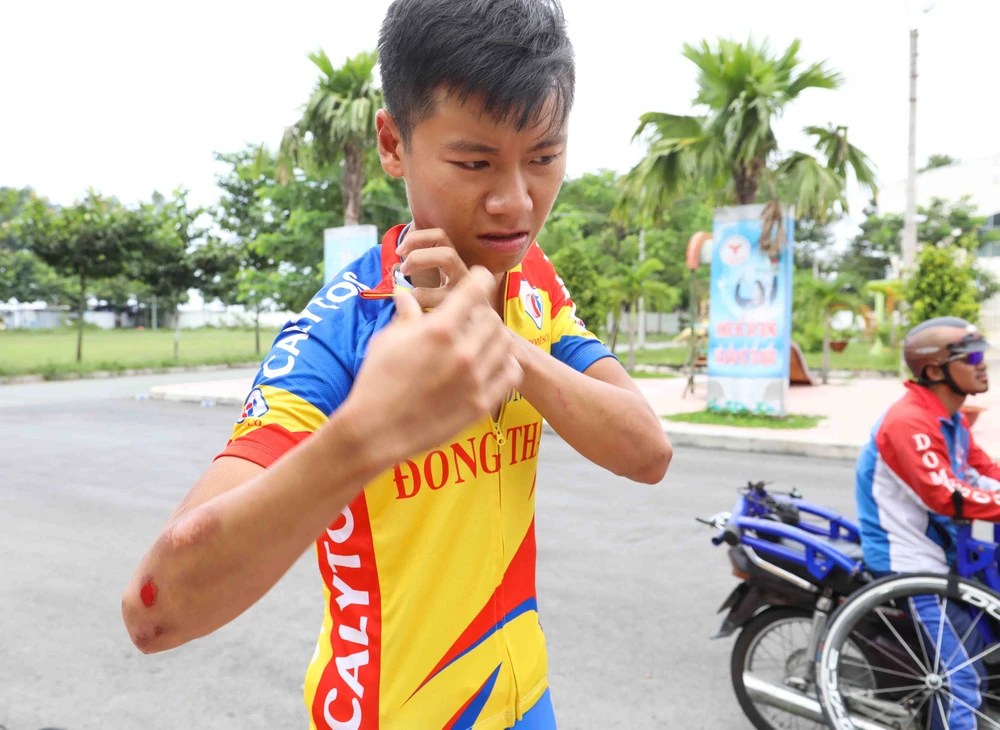 Ngay ở vòng đấu đầu tiên, tuyển thủ quốc gia Phan Hoàng Thái không may vấp ổ gà té ngã khiến Đồng Tháp chỉ còn "3 máy" chiến đấu với các đối thủ.