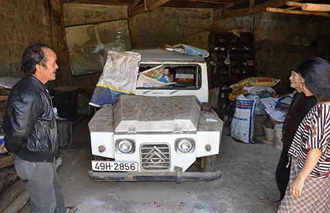 Thành viên nhóm La Dalat đi thăm các xe cũ được “trùm mền” cất trong kho. Ảnh: LÊ CHÍ TRUNG