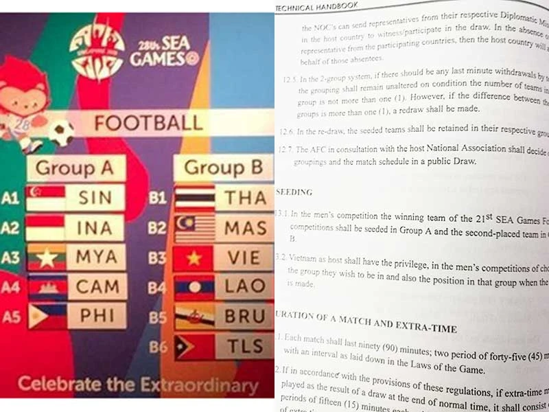 Bảng đấu SEA Games 28 mà chủ nhà Singapore được ưu tiên chọn bảng và quy định trong Sổ tay kỹ thuật về bốc thăm ở SEA Games được ban hành trước năm 2003 mà Việt Nam đăng cai.