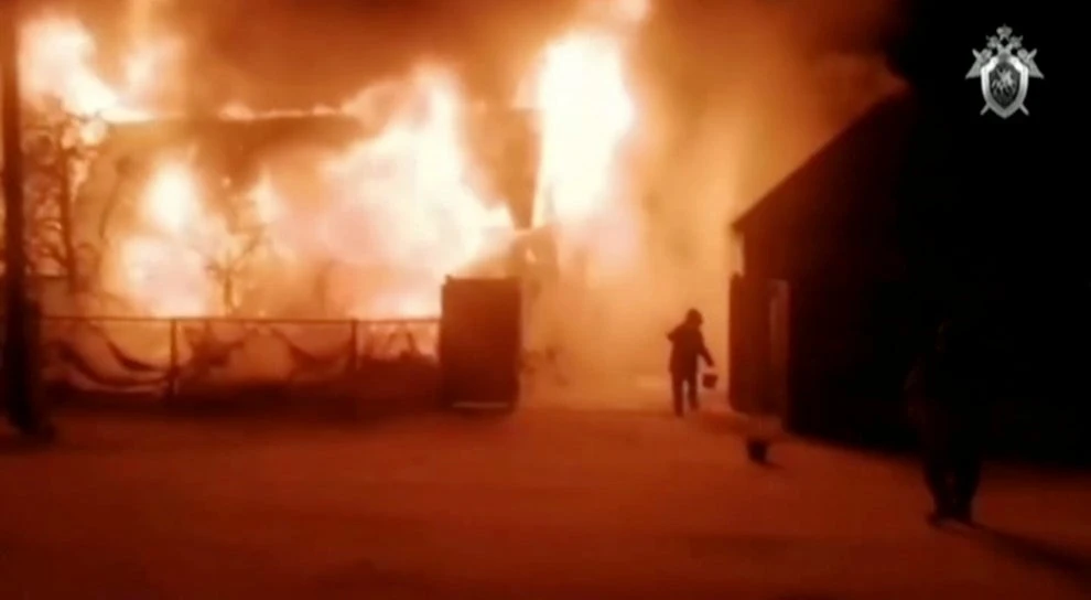 Viện dưỡng lão ở làng Ishbuldino, nước CH Bashkortosan bị hỏa hoạn vào rạng sáng 15-12. Ảnh: REUTERS