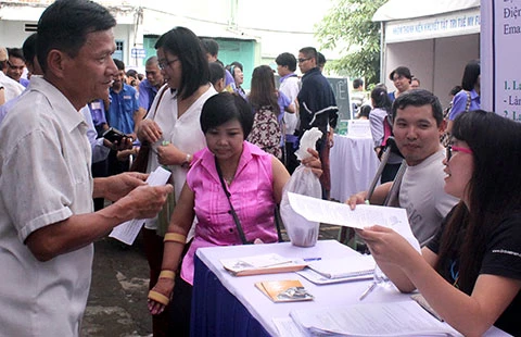 Người khuyết tật tìm việc tại hội chợ việc làm dành cho người khuyết tật tổ chức tại TP.HCM ngày 3-12. Ảnh: Phạm Anh