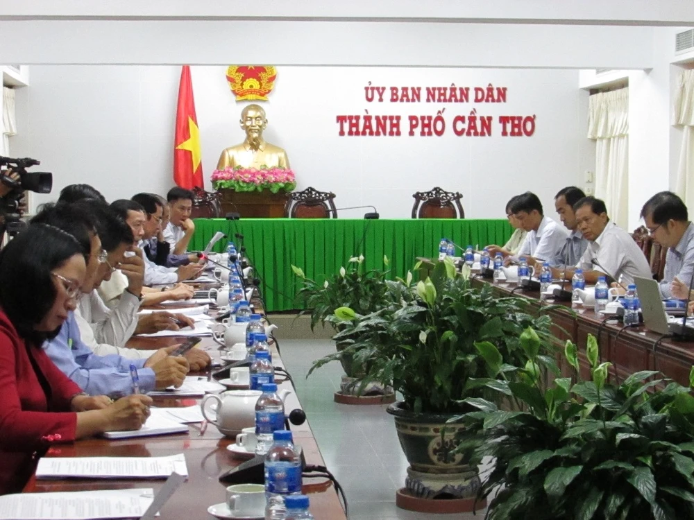 UBND TP Cần Thơ họp với các sở, ngành liên quan ngày 17-7 rà soát lại công tác chuẩn bị Hội nghị xúc tiến đầu tư TP Cần thơ năm 2018. Ảnh: NN