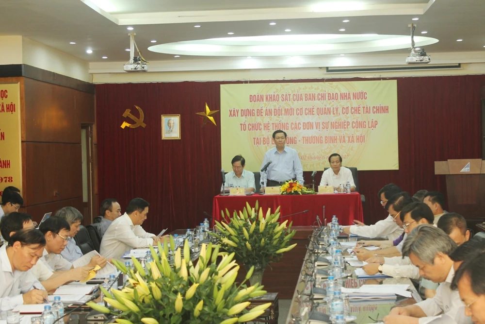 Ngày 2-6, Phó Thủ tướng Vương Đình Huệ dẫn đầu Đoàn khảo sát của Ban chỉ đạo nhà nước xây dựng đề án đổi mới cơ chế quản lý, cơ chế tài chính tổ chức hệ thống các đơn vị sự nghiệp công lập đã làm việc với Bộ LĐ-TB&XH.