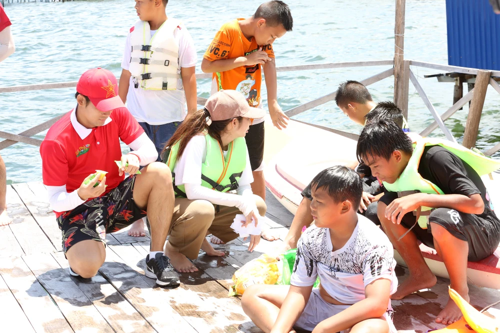 Đứng trước dàn cầu thủ nhí, phần sợ bị mọi người hiểu nhầm, bạn gái “năm xưa” của Ngô Kiến Huy sau đó mới đính chính rằng mọi chuyện đều do ban tổ chức dàn xếp, nhằm để cuộc gặp gỡ với học trò HLV Nguyễn Hồng Sơn thêm phần thú vị mà thôi.