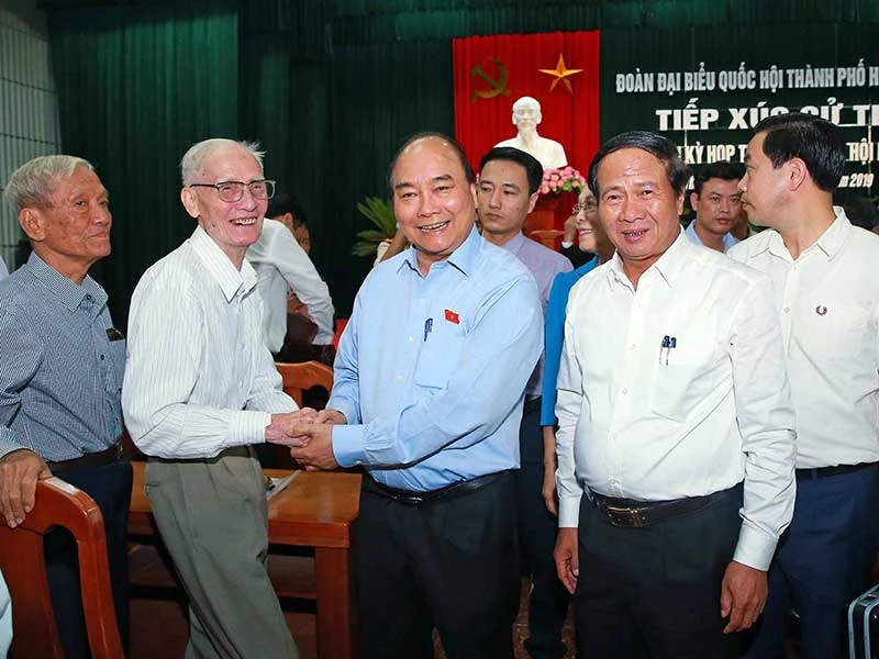 Thủ tướng Nguyễn Xuân Phúc với các cử tri huyện Thủy Nguyên, TP Hải Phòng. Ảnh: TTXVN